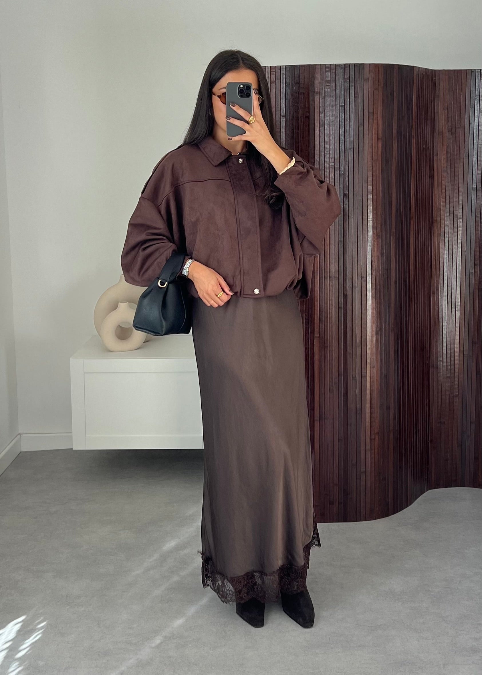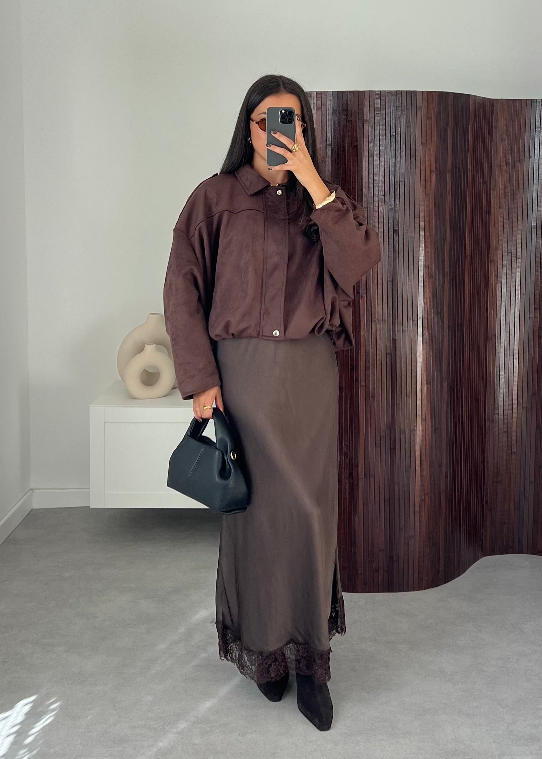 Lace Trim Satin Viscose Skirt